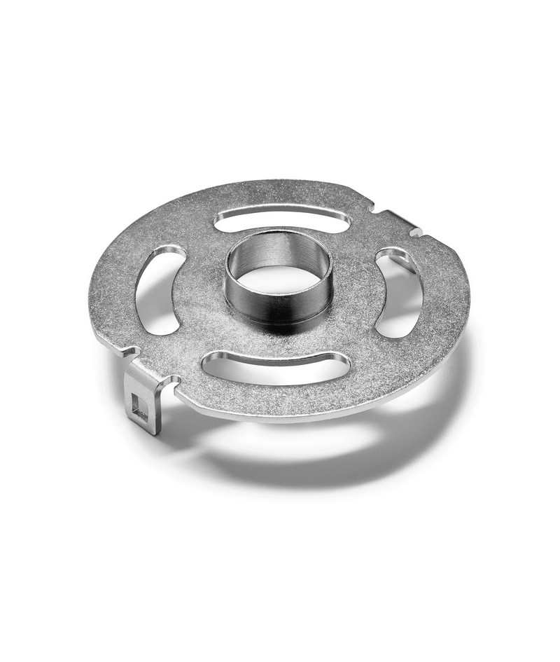 Anillo copiador para el guiado seguro de la fresadora al fresar con una plantilla. No importa la forma que tenga la plantilla. para fresadora OF 2000 El anillo copiador puede insertarse sin herramientas El alojamiento cónico en la OF 2200 permite el autocentrado apto para fresas de hasta 25 mm de diámetro