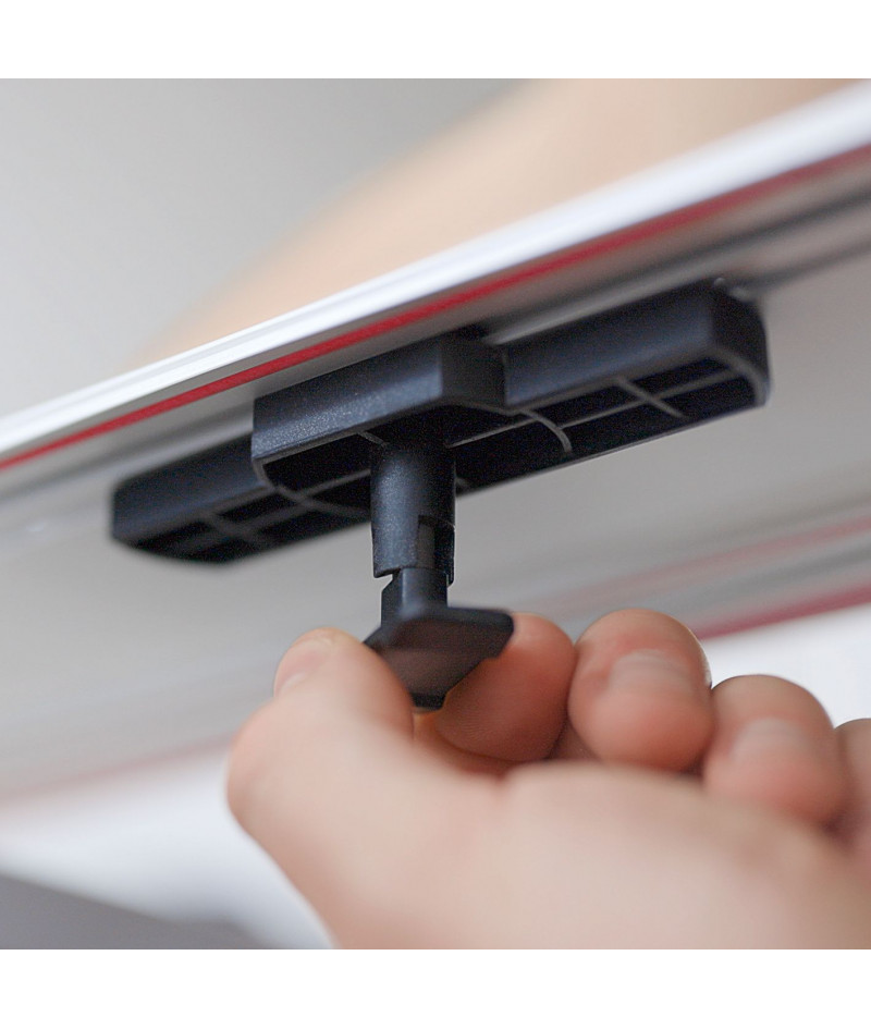 Posicionamiento seguro de los listones. Los listones se colocan y se fijan rápidamente en la parte central con el tope para listones, lo que resulta ideal para los ensamblajes de armazones. El tope para listones es compatible tanto con la DF 500 como con la DF 700, y puede alojar listones de entre 22 y 70 mm de grosor.