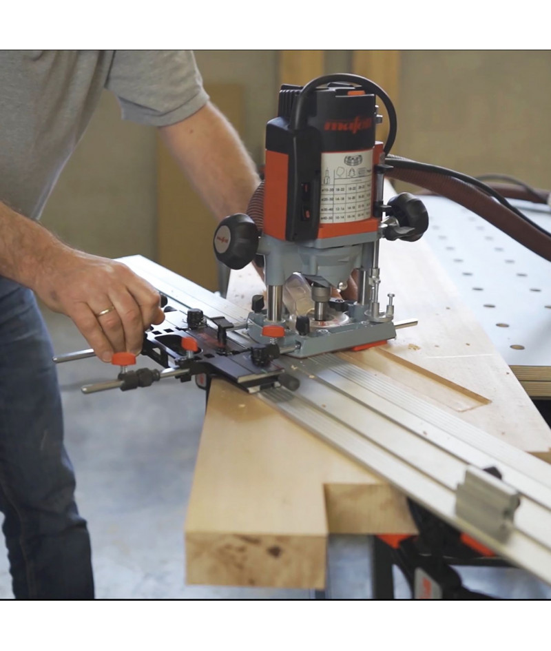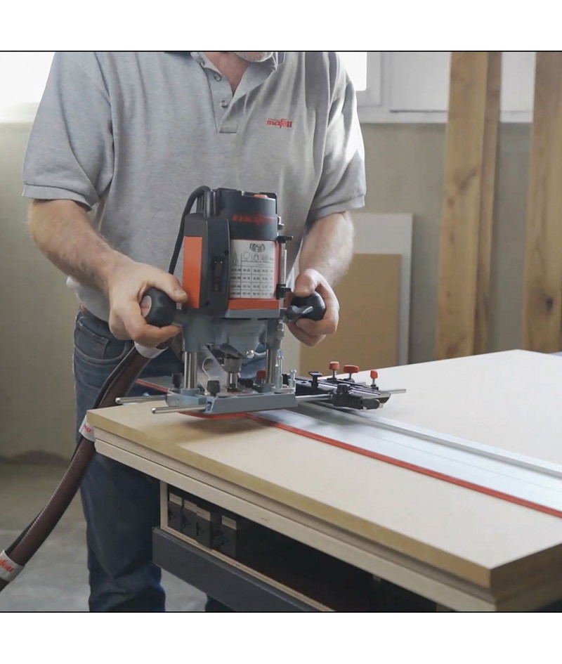 El adaptador de fresadora superior ofrece múltiples funciones. Por ejemplo, es adecuado como tope de bolsillo para fresar, compás, adaptador de carriles guía o como tope paralelo.