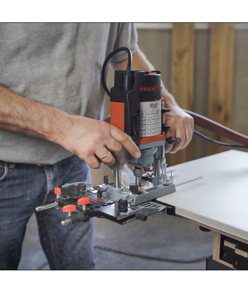 Distancia perfecta entre orificios. Las distancias recurrentes entre orificios de 100-205 mm se transfieren fácilmente con el tope transversal, sin necesidad de marcar la pieza de trabajo.