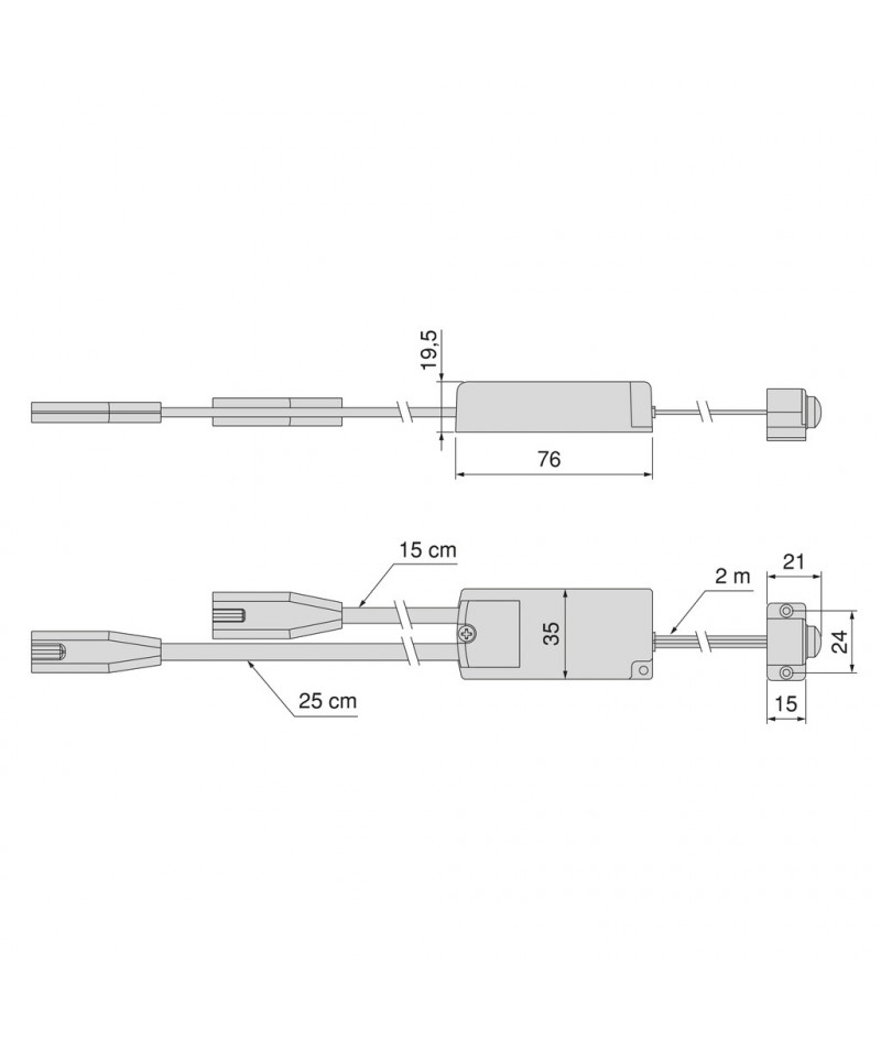 Sensor LED Smart switch/door SIMPLE (interruptor/proximidad) (12V DC) (24V DC), Plástico, Negro El sensor LED Smart switch/door SIMPLE está diseñado para controlar el encendido y apagado de luminarias LED de 12V o 24V DC por proximidad en una amplia variedad de aplicaciones.