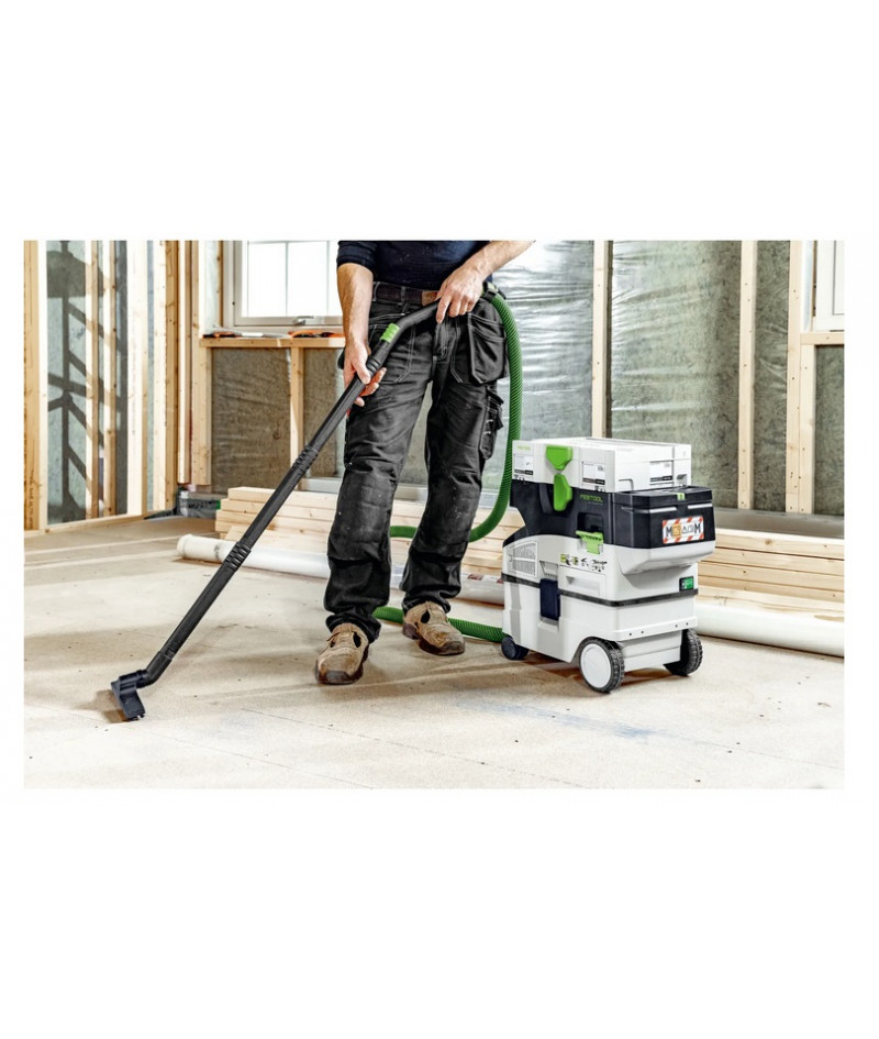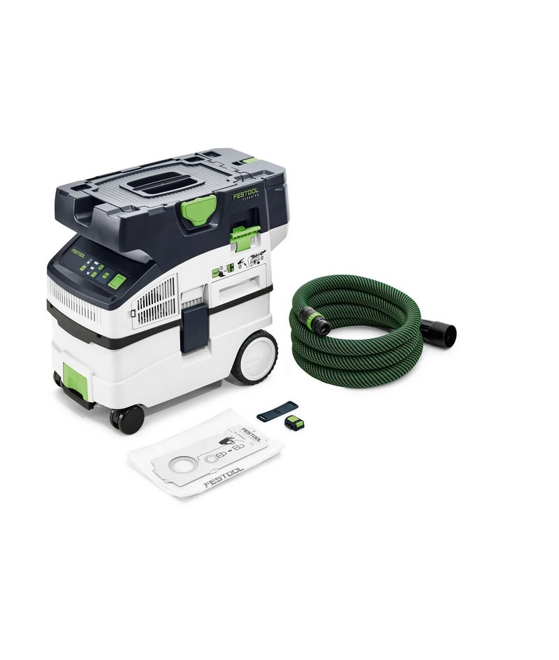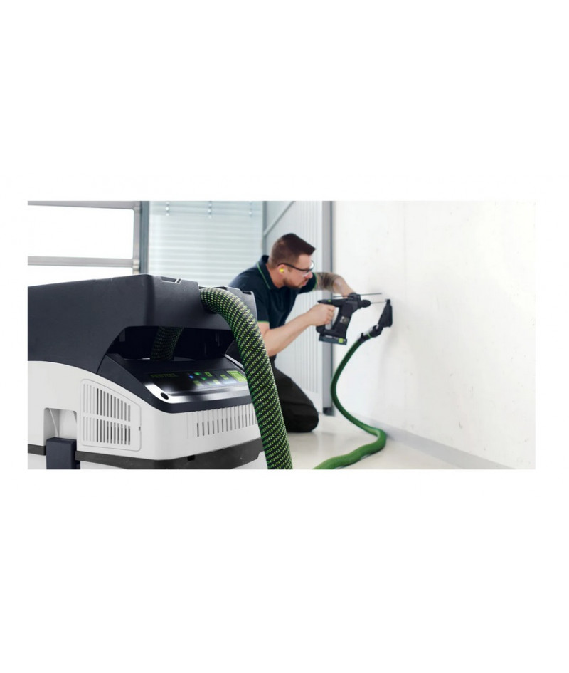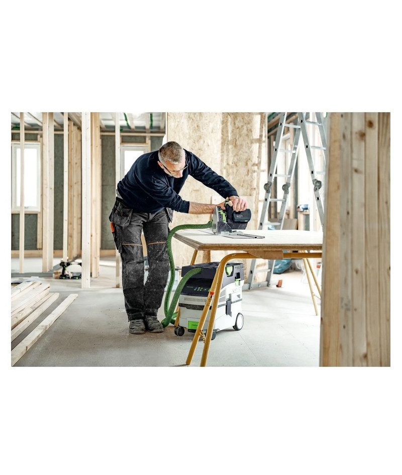 Despídete del polvo. Da la bienvenida a la salud, también sin enchufe. Al aspirador compacto a batería CTLC MIDI le encanta el polvo y es perfectamente adecuado para las herramientas de batería de Festool. Tanto para aplicaciones móviles de serrado como de lijado o taladrado, su diseño compacto y el peso reducido hacen de ellos el aliado perfecto para la jornada. ¡Así es posible trabajar sin polvo también en el sistema a batería! La innovadora puesta en marcha automática mediante Bluetooth® o el práctico mando a distancia se encargan de que la interacción entre la herramienta a batería y el aspirador sea perfecta. Nuestros aspiradores a batería se distinguen por su capacidad de aspiración máxima gracias a la turbina de 36 V con 2 baterías de 18 V. Para trabajar de forma más saludable con polvo de clase L. Y, como siempre, todo encaja: el aspirador, el tubo flexible de aspiración liso, la herramienta a batería, la conexión T-LOC del Systainer. Así se consigue un sistema totalmente perfecto.