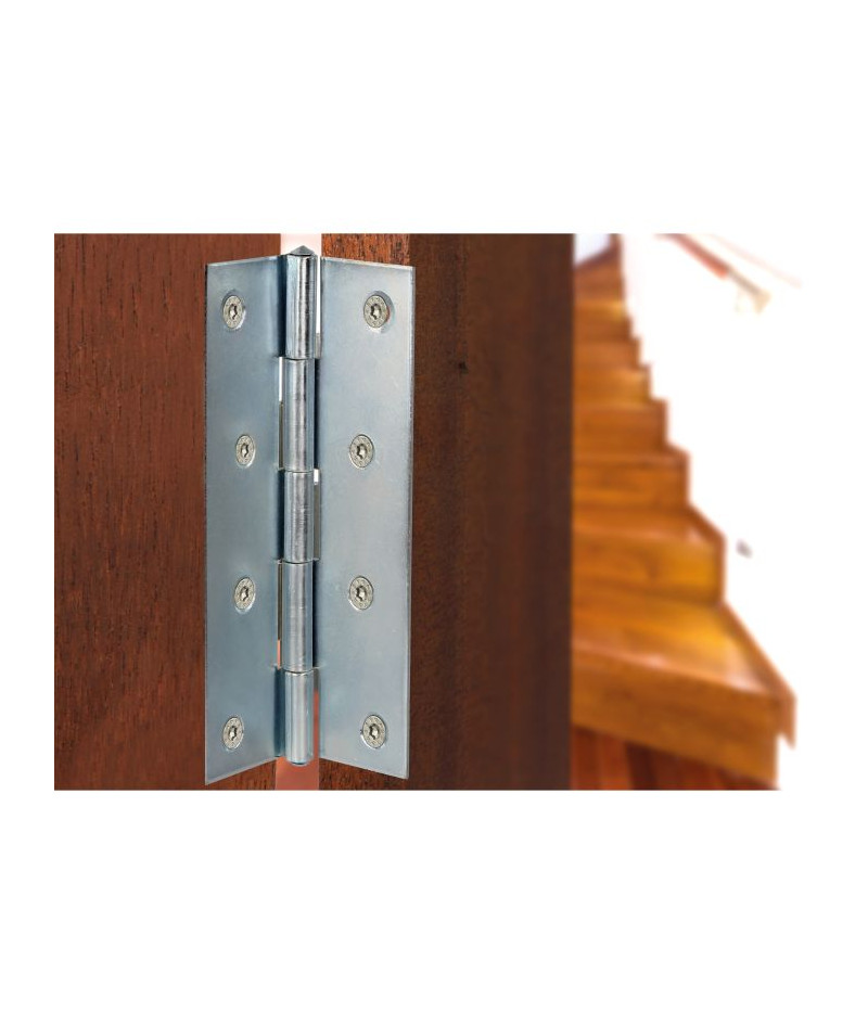 Bisagra estrecha fabricada en acero de alta calidad, resistente y duradero. Fácil instalación mediante tirafondos.