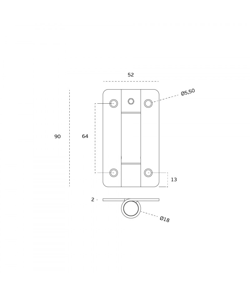 Bisagra desmontable, con esquinas redondeadas MATERIAL: ACERO INOXIDABLE - EN 1.4372 ACABADO: SATIN