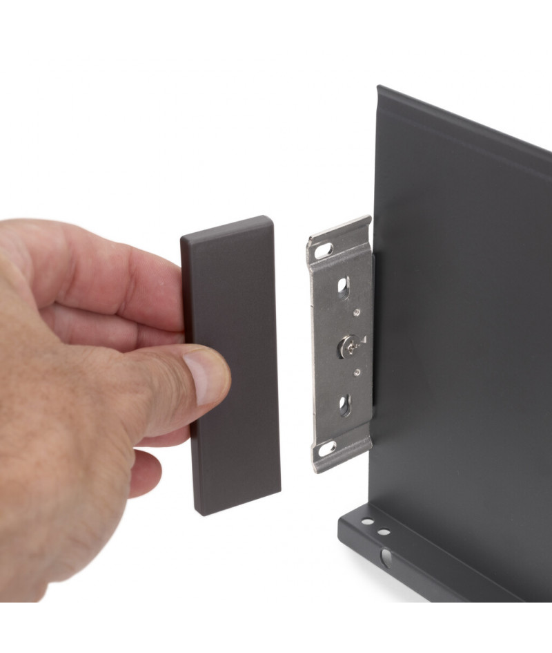 Distanciador lateral Plástico gris antracita El distanciador lateral es una pieza fabricada en plástico cuya función es la de dejar un espacio de 25mm entre el cajón interior y la puerta abisagrada para que estos no choquen el uno con el otro. Incluye 16 tornillos EURO 6,2 x 13 mm