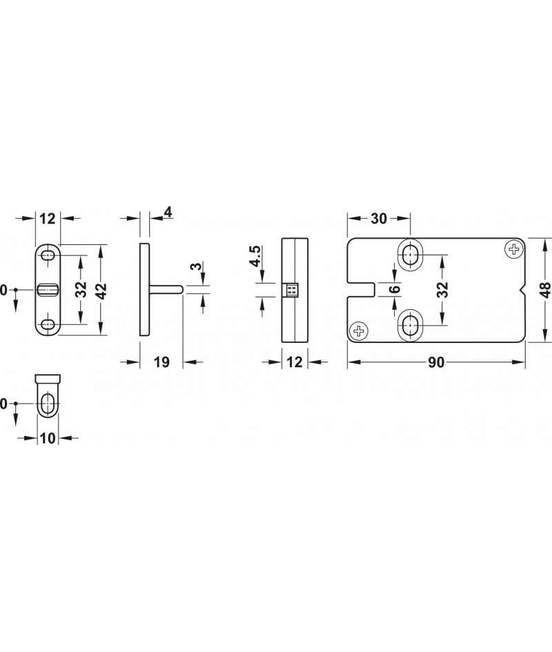 Consultar placas metálicas para cierres magnéticos. Para montaje con tornillos se recomiendan de cabeza pozidrive autoroscantes de Ø3.