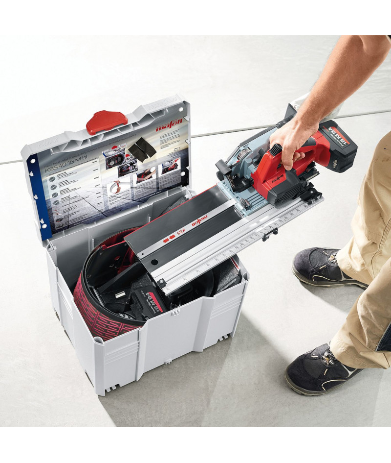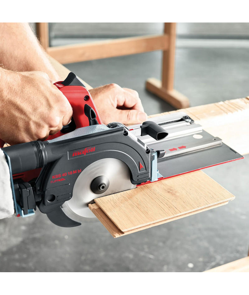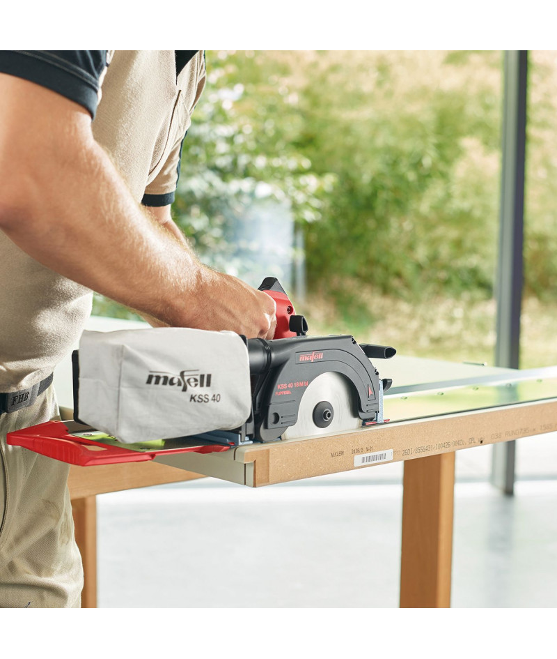Sierra de corte KSS 300 Mafell Es sin duda la mejor herramienta de corte con disco para montaje del mercado, es única, por sus prestaciones, acabado y precisión, increíbles. Con guía de retésto retráctil para cortes cortos y guia flexible para cortes largos hasta 1400 mm.. es la herramienta de corte definitiva para cualquier montador
