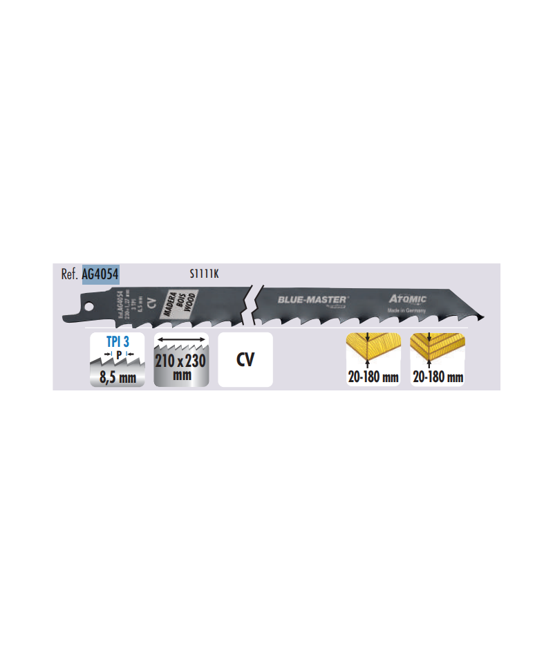 Material: CV Longitud de corte: 210mm Acabado: X-fino Velocidad: X-rápido Dentado: 2.5