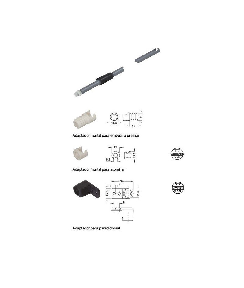 4 adaptadores frontales (2 de embutir a presión y 2 para atornillar)