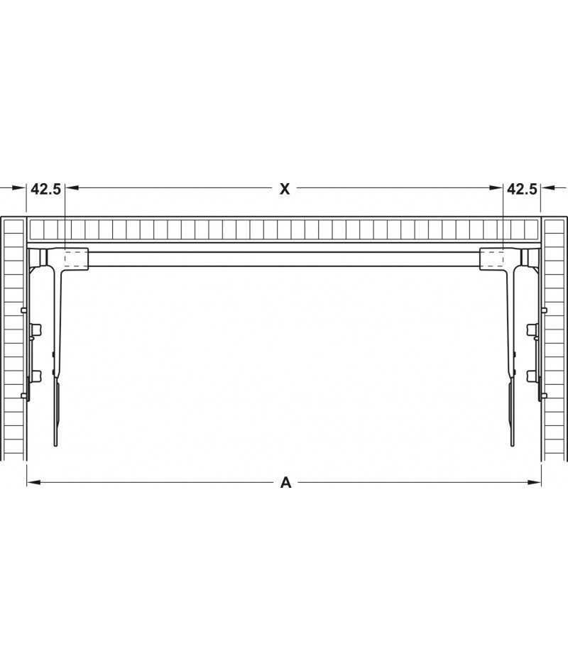 Sistema de compases diseñado para puertas elevables con montaje sin necesidad de bisagras. Ángulo de apertura de la puerta de 107º para aprovechar el espacio y facilitar la accesibilidad.