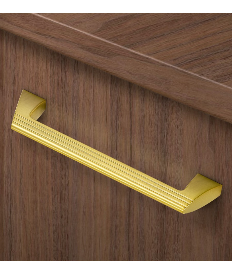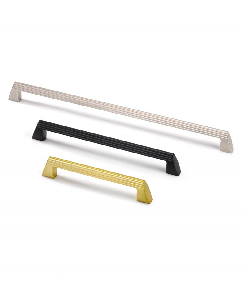 El tirador Grooves está diseñado a partir de una sección lateral en forma de elipse que se proyecta en línea recta, aportando elegancia y una sutil traza. Sus finas ranuras en la superficie le dan nombre y aportan un tacto agradable.
